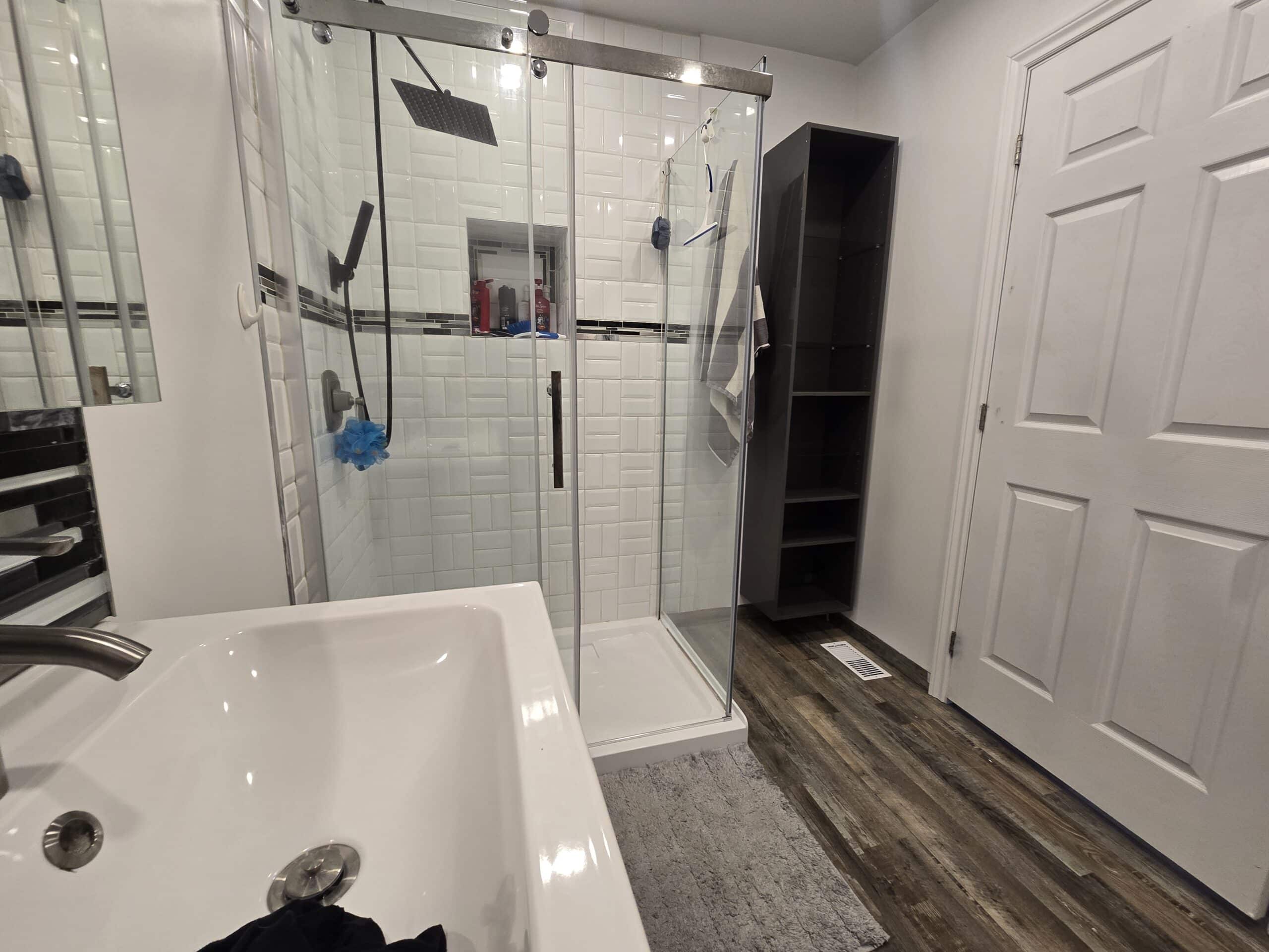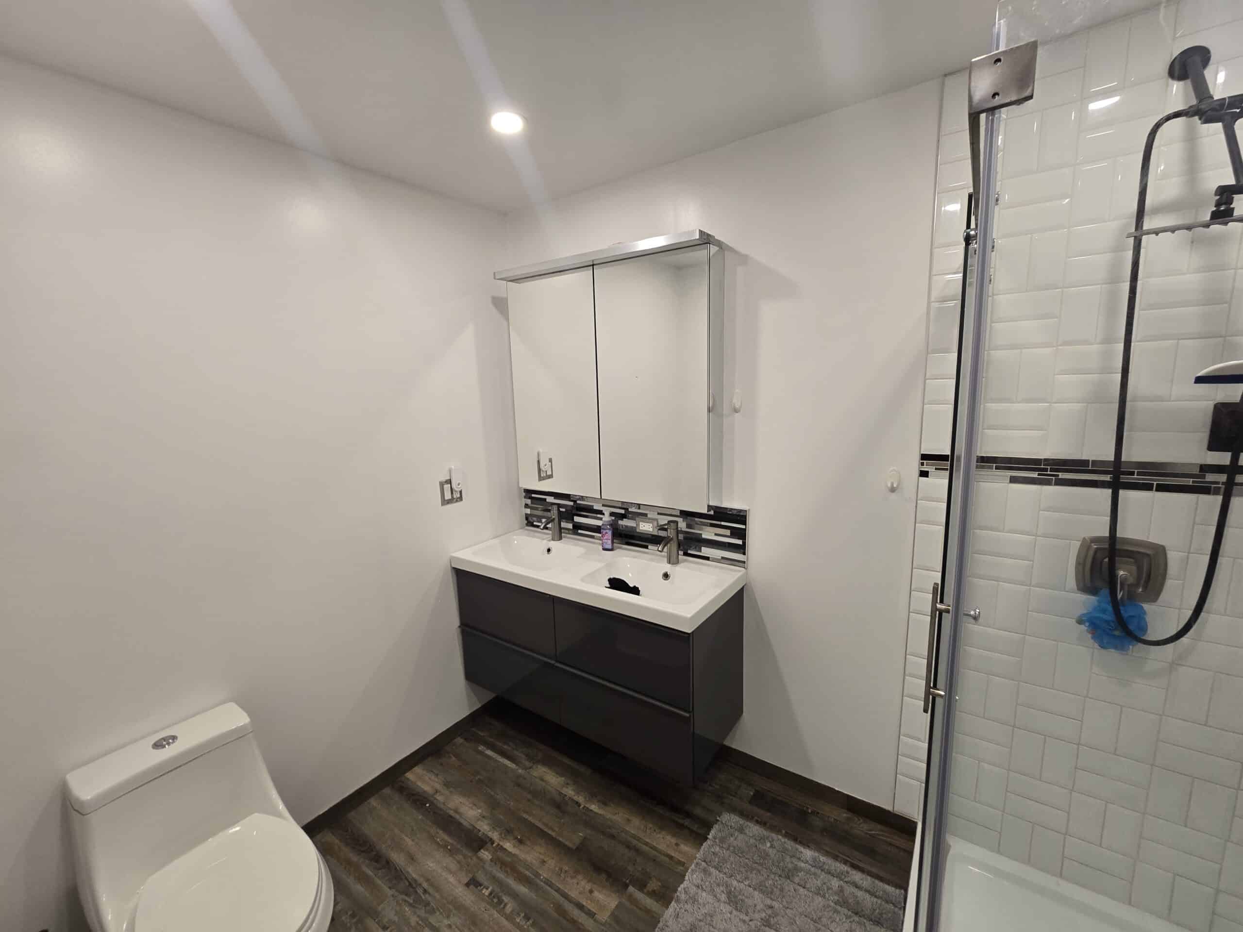 Description : Newly renovated one bedroom apartment for rent in Innisfil. This modern apartment is on the second floor of a legal duplex. The kitchen has state of the art appliances. galley style with stone counter tops and lots of cupboard space. There is a powder room off the kitchen as well. This is an open concept design with formal living and dining room. lots of windows and wall to wall engineered hardwood flooring. The bedroom can fit a king size bed, there is a large walk-in closet and a 4 piece washroom with stand up shower, double sinks and custom tile.
