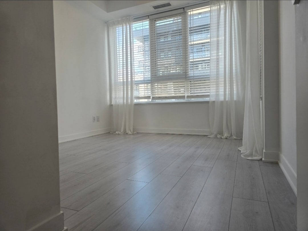 Description: Spacious one plus den condo for rent in Oakville. This modern condo has an open concept layout with a 4 piece wasshroom off the common living area.The kitchen comes with state of the art appliances, stone counter tops and upgraded cabinetry. The den is quite large, there is no door but can accommodatea home office or a guest bedroom. There is a balcony off the spacious living room. This unit has upgraded engineered hardwood flooring throughout.